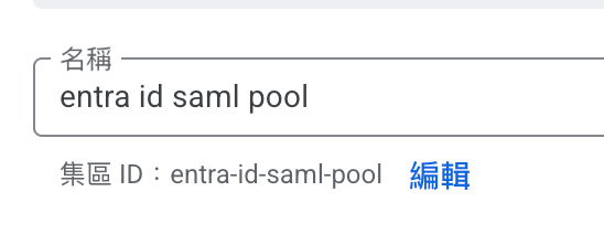 - 在「名稱」欄位中,輸入集區的顯示名稱。系統會在您輸入名稱時自動衍生集區 ID,並顯示在「名稱」欄位下方。如要更新集區 ID,請點選集區 ID 旁的「編輯」。