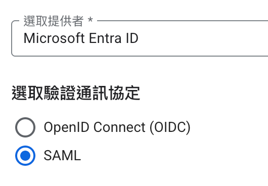- 在「選取通訊協定」中,選取「SAML」。