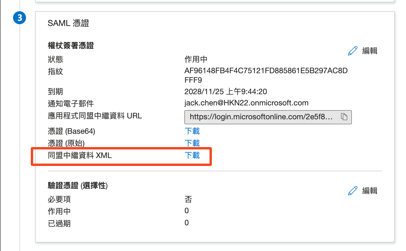 - 依序前往「單一登入」>「SAML」。